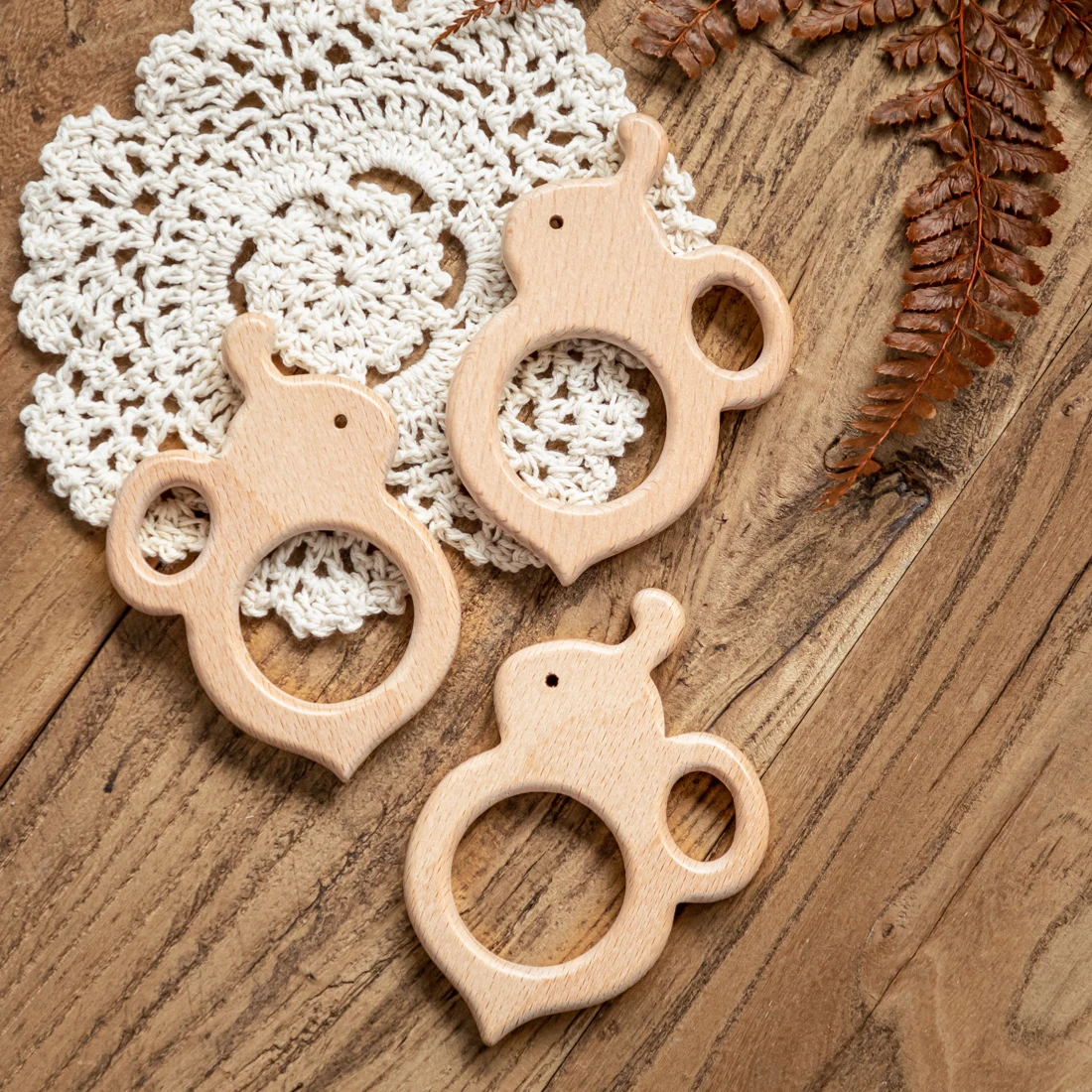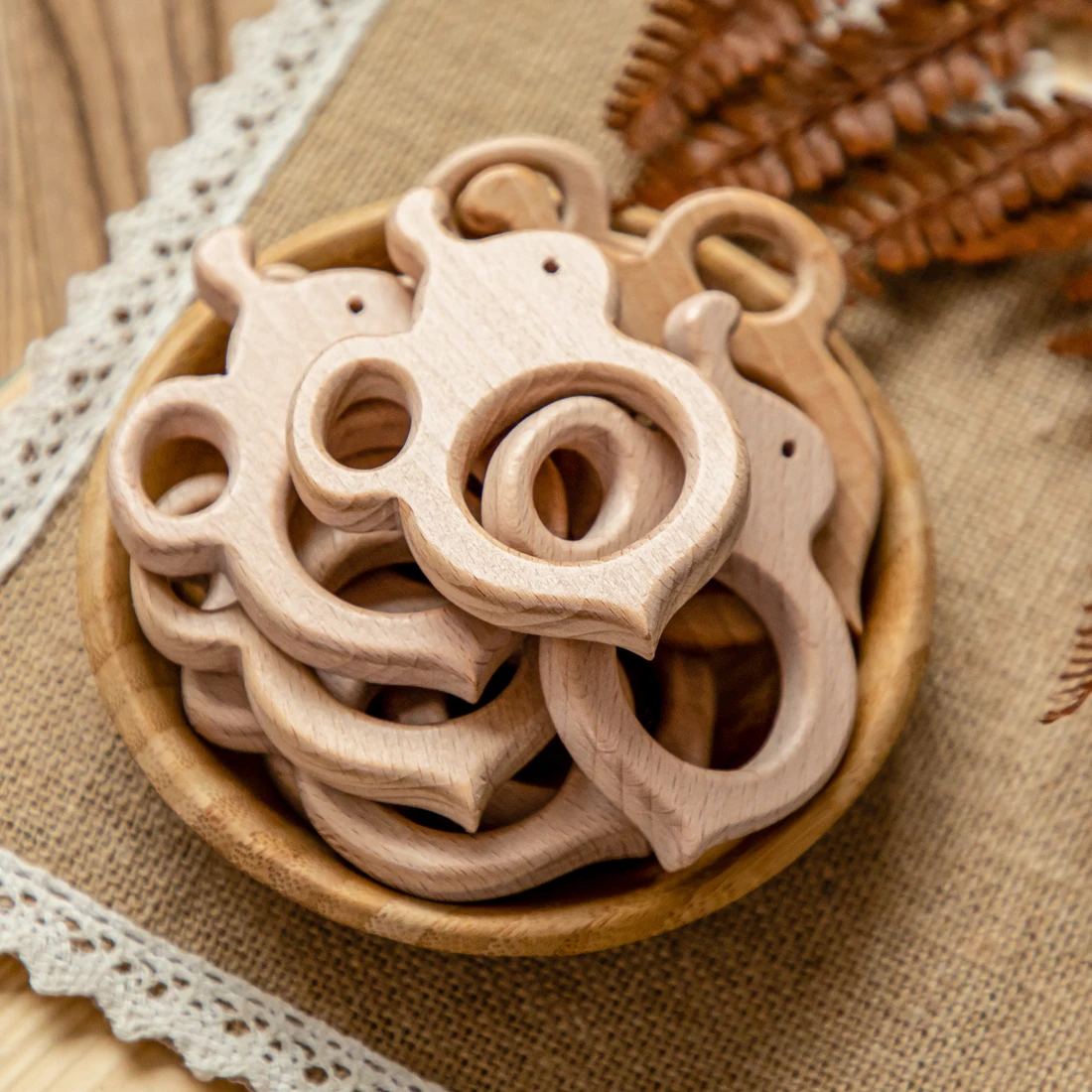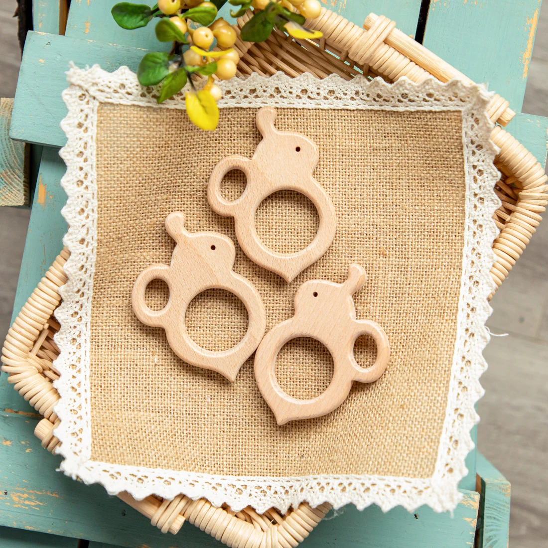 10Pc Baby Wooden Teether Beech Bee Pacifier
